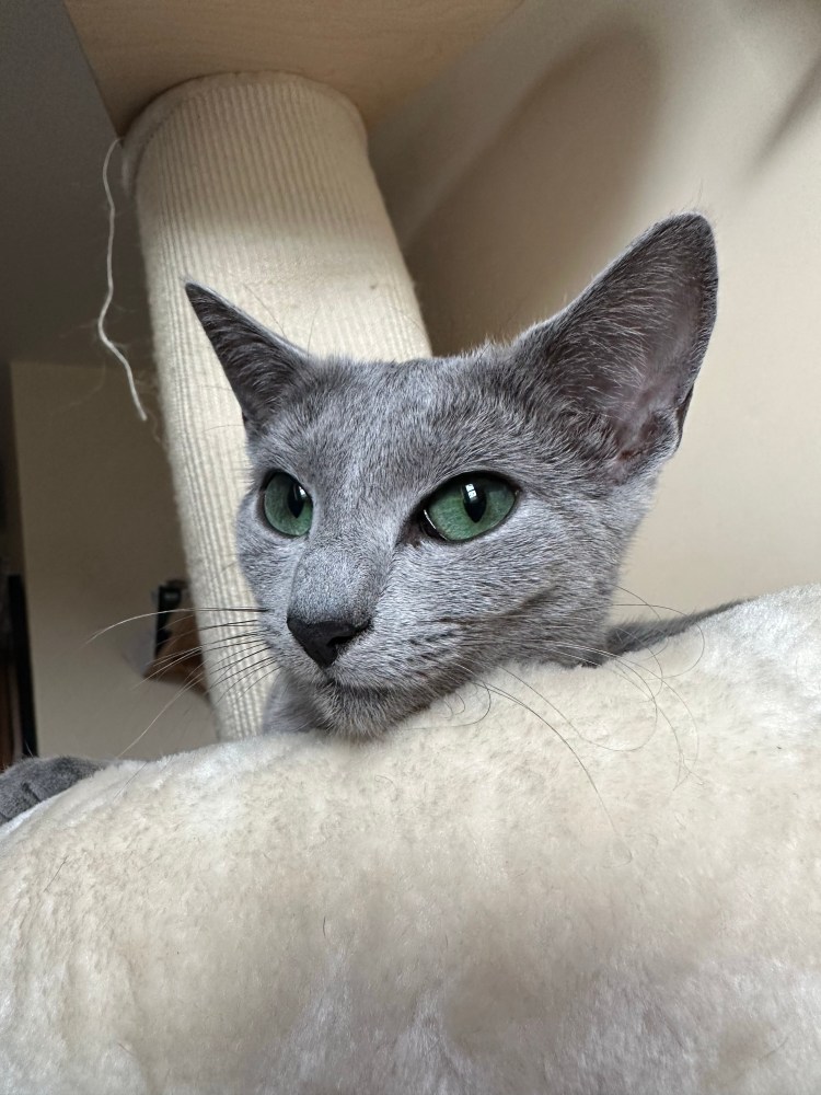 There is many different looking Russian Blues. We identify different “types” of the breed. European type tend to be darker, bigger in size, the ears are positioned like donkey ears, eyes have almond shape. Our cattery focus on American russian blues. Many people call them “alien” or “gremlin” looking because of their massive, widely spreaded ears, big, rounded eyes, bright colour of the coat, smaller body.